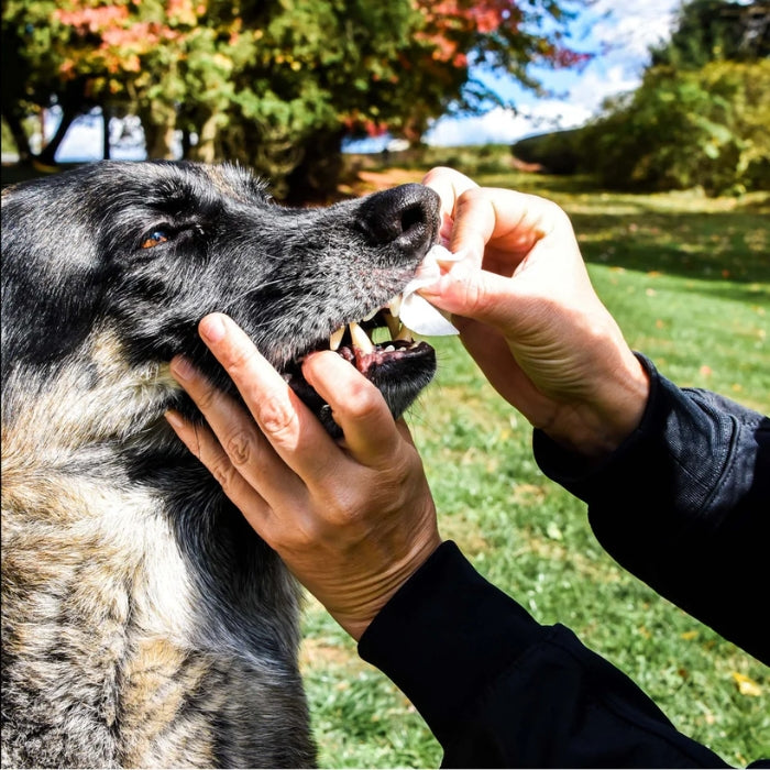 This depends on your dog's size and dental condition. For small dogs or those with light buildup, one wipe typically covers the entire mouth. For large dogs or heavy tartar, you may need a second wipe to ensure thorough cleaning. Use the wipe until you see visible cleaning results - when tartar and debris are removed and teeth look cleaner. Don't rush the process; thorough cleaning is more important than using exactly one wipe.